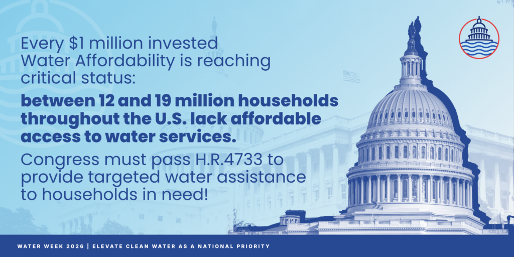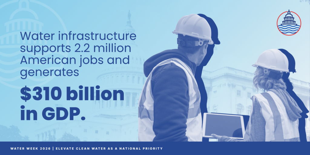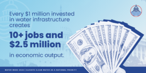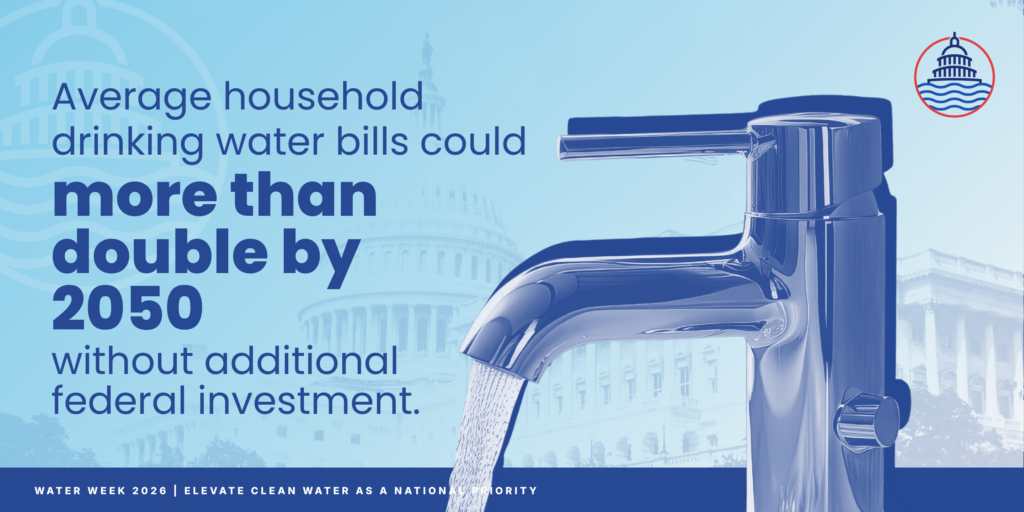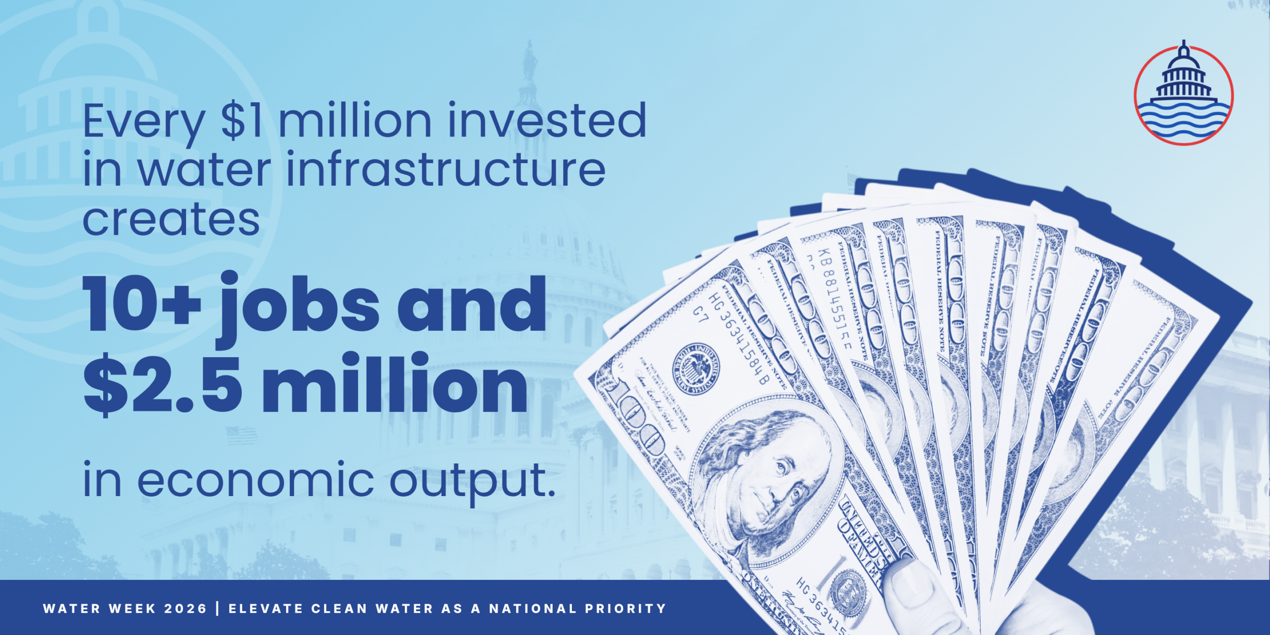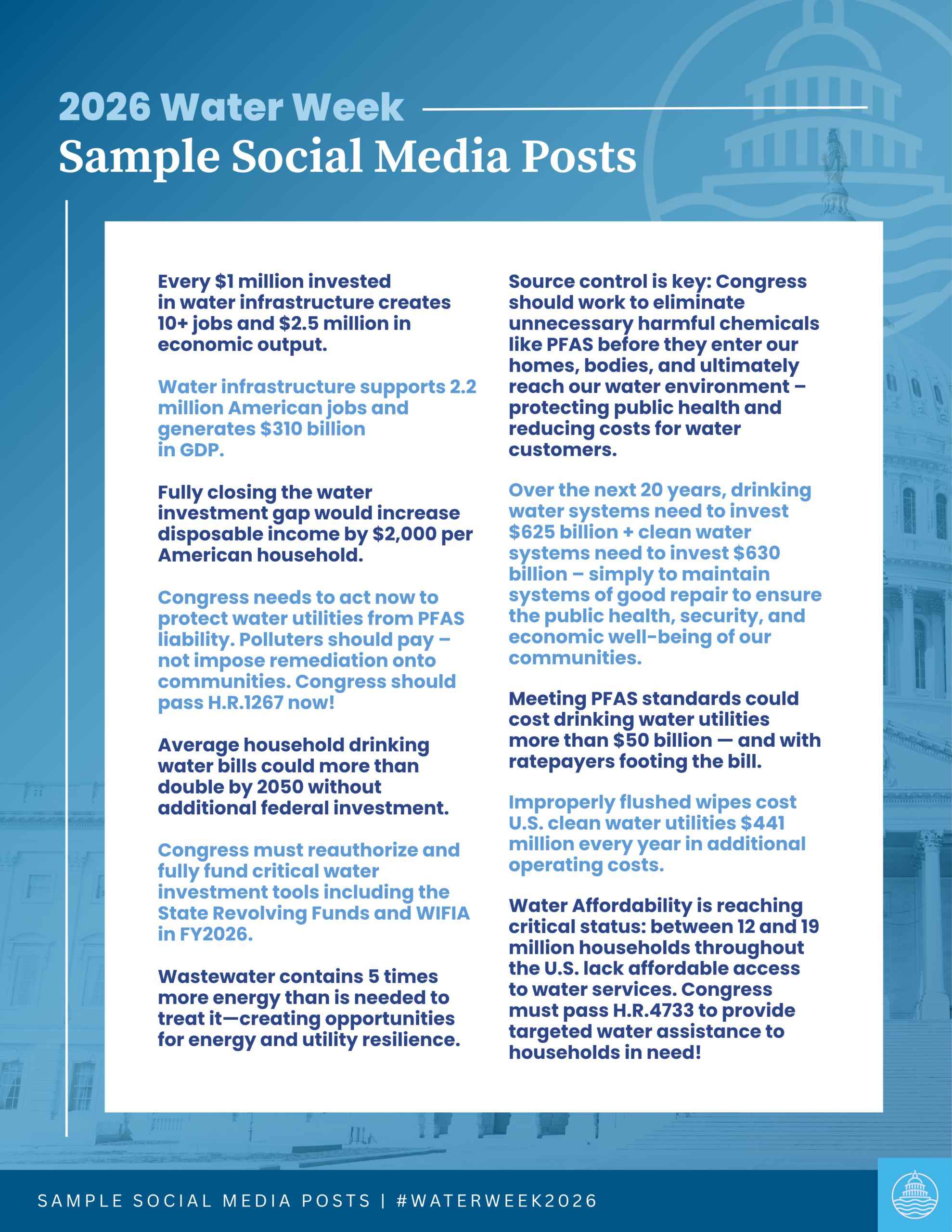 Whether joining the events in Washington or participating through local advocacy efforts back home, strong engagement during Water Week 2026 remains critical as the sector works to advance shared priorities—including sustained federal investment in water infrastructure, improved affordability programs, science-based regulatory decision-making, and continued support for innovation and research.